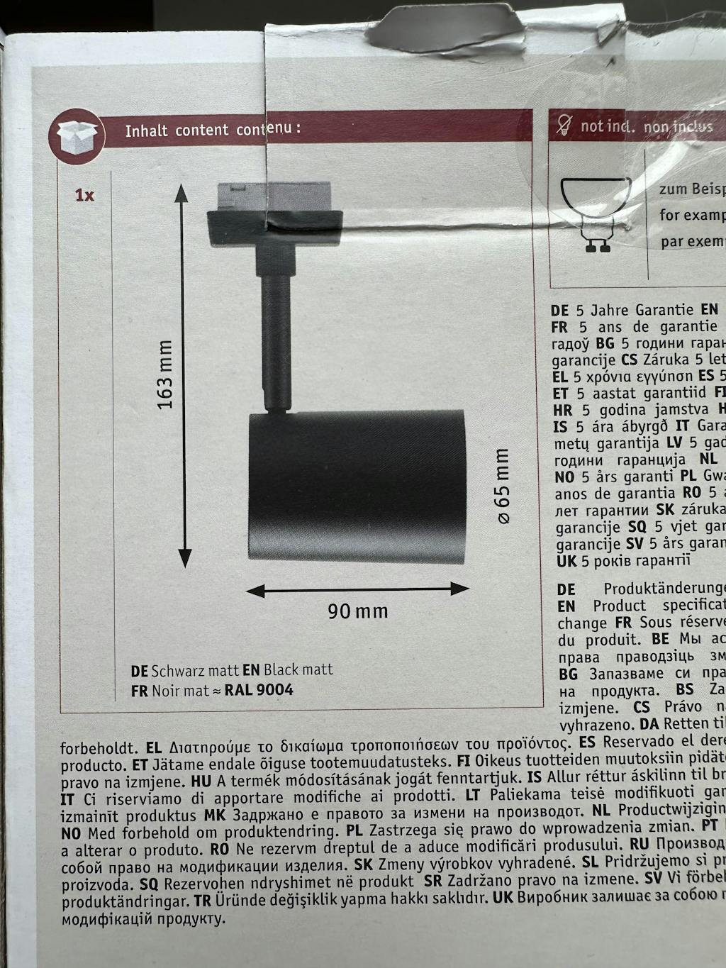 | Tauschbarkeit | 1 Lichtquelle ist ohne dauerhafte Beschädigung der Leuchte austauschbar durch Endanwender. |